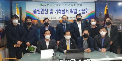 한국건설안전환경실천연합, 품질안전 및 거래질서 확립 간담회 개최 관련 학회, 협회 기업 참석, 문제점 및 개선방안 논의 한국건설안전환경실천연합 (수석회장 김종일)은 28일 오후 3시 한국건설안전환경실천연합 (이하 ‘건실련’) 회의실에서 방수재 품질안전 및 거래질서 확립과 관련 문제점 및 개선방안에 따른 협력방안 모색을 위한 ‘방수재 품질안전 및 거래질서 확립’ 간담회를 관련 학회, 협회 기업체가 참여한 가운데 개최했다. 이번 간담회는 현장 관계자의 의견 수렴을 통해 협력방안을 모색하고 관련 기업의 경쟁력 확보를 위해 마련되었으며, (사)한국건설방수학회, (사)습식방수공사업협의회, (사)한국방수재협회, 페트로산업, 성문산업, 아하방수텍, 리폼씨앤씨, 한본인더스트리 등에서 관계자가 참석했다.그린몰치과병원 업무협약